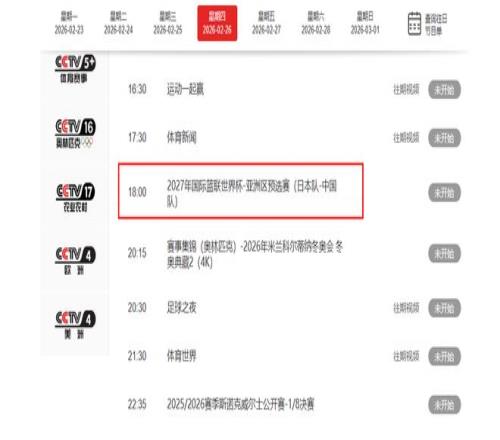 根據賽程的安排,CCTV5直播將在2月26號晚上18:00全程直播,國內球迷們有福了。