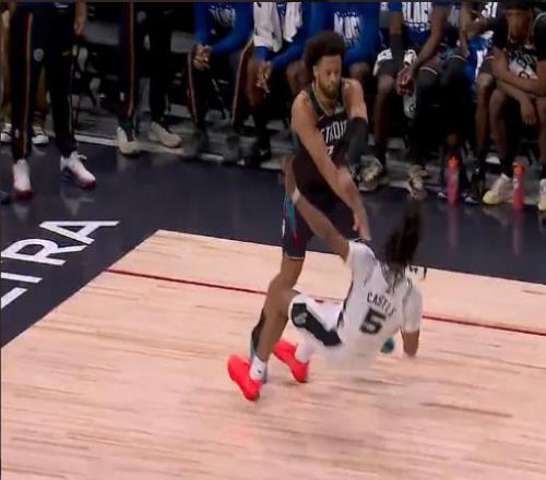 次節(jié)比賽雙方爆發(fā)沖突,先是坎寧安推倒卡斯?fàn)?,隨后凱爾登上前推搡坎寧安,杜倫沖過去手指凱爾登,裁判吹罰凱爾登與杜倫各一次技術(shù)犯規(guī)。