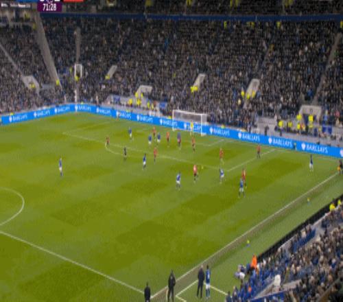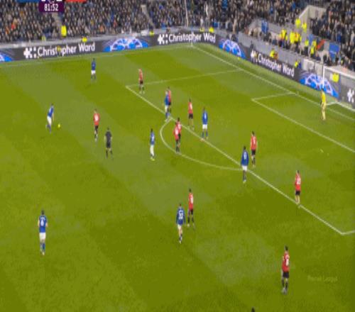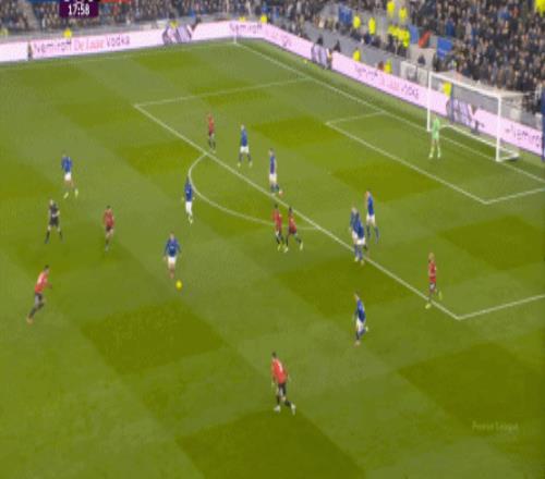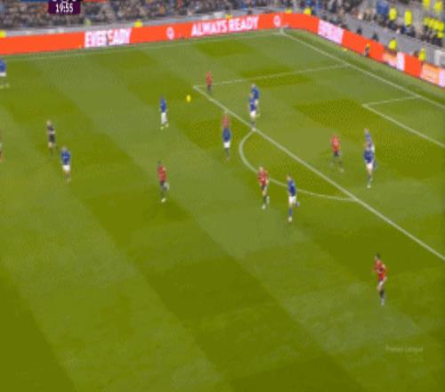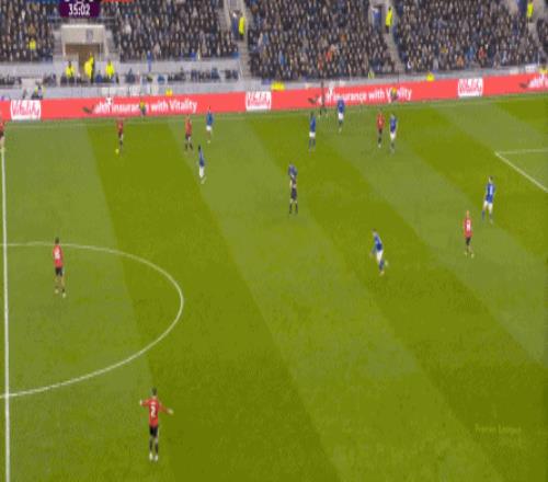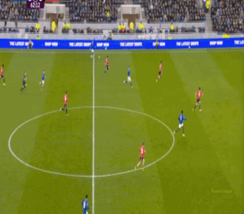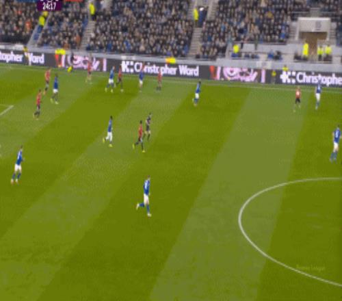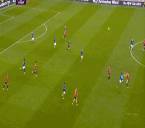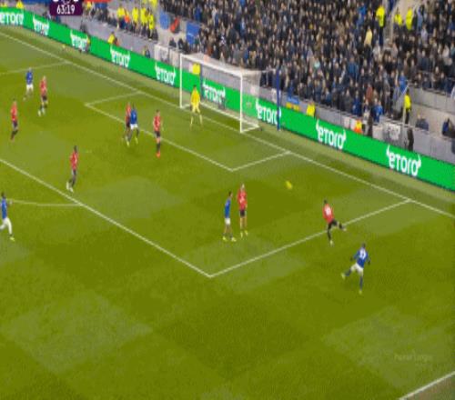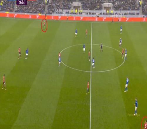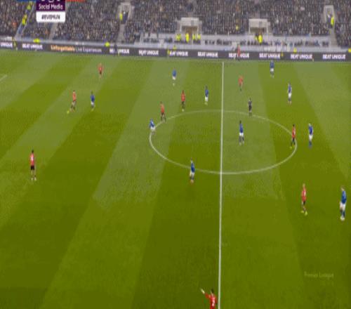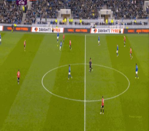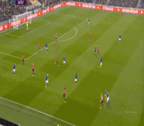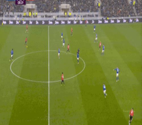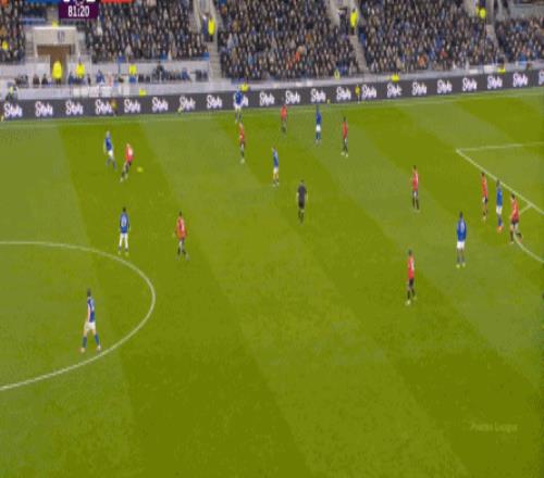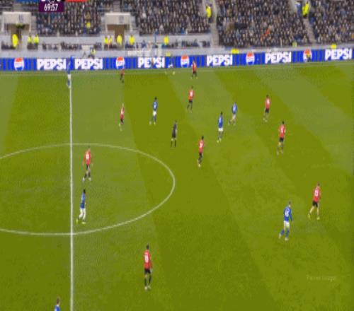 因?yàn)?,?5到70分鐘,埃弗頓幾乎將曼聯(lián)壓在了半場范圍內(nèi),他們用相當(dāng)長線條的方式來發(fā)展自己的進(jìn)攻: