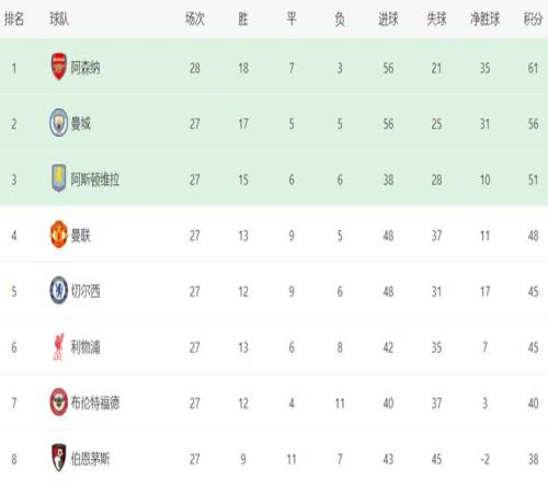 這場(chǎng)比賽也改寫(xiě)了英超的爭(zhēng)四格局。曼聯(lián)憑借這場(chǎng)勝利,總積分達(dá)到48分,殺入了歐冠區(qū),排名第4,僅僅落后第3名的阿斯頓維拉3分,領(lǐng)先身后的切爾西和利物浦3分。