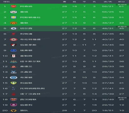 隨著曼聯(lián)10埃弗頓,英超第27輪結(jié)束了所有比賽,最新排名如下!