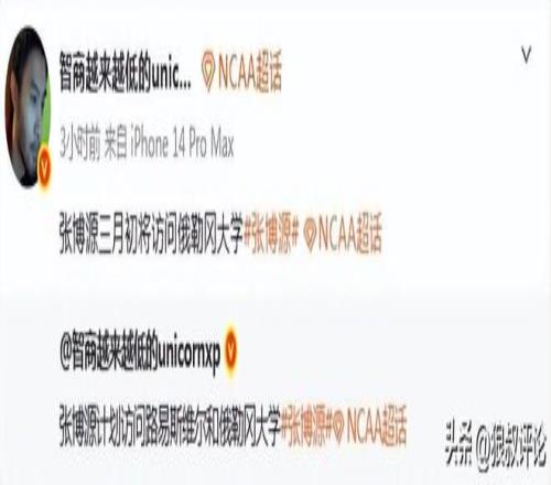媒體人王健發(fā)文點(diǎn)評(píng):“張博源三月初將訪問俄勒岡大學(xué)”