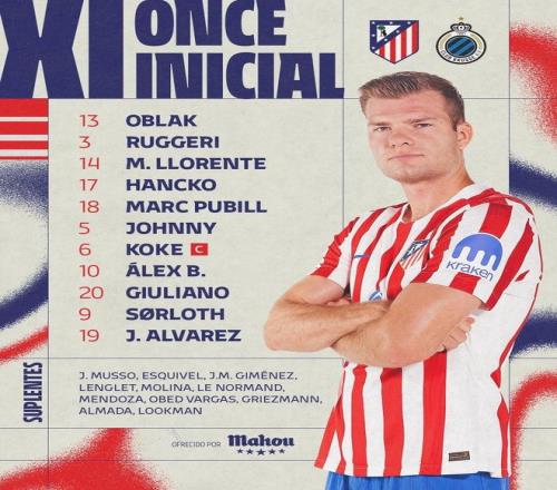 馬競vs布魯日:阿爾瓦雷斯搭檔瑟洛特,小西蒙尼首發(fā)