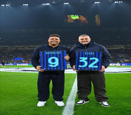 這兩個(gè)人就是曾經(jīng)的國(guó)米鋒線傳奇搭檔羅納爾多和維埃里,此番二人一同回到了曾并肩作戰(zhàn)多年的圣西羅球場(chǎng),并且還獲得了俱樂(lè)部贈(zèng)送的各自的紀(jì)念球衣。