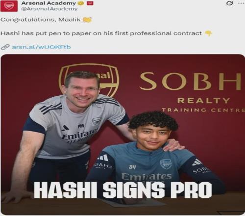 現(xiàn)年17歲的哈希在2022年12月加盟阿森納青訓(xùn),這名極具創(chuàng)造力的攻擊型中場已經(jīng)是槍手u18的一員。