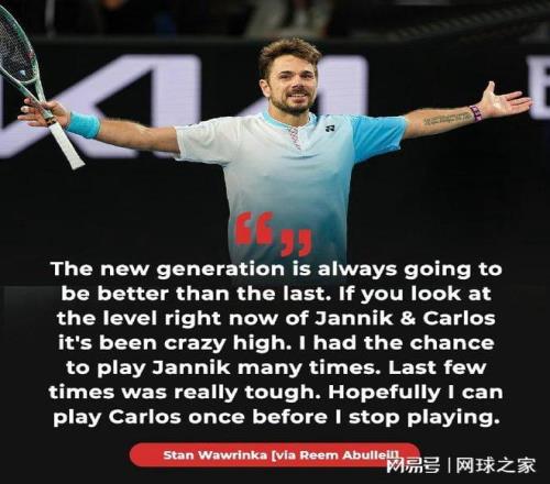 其它場次:前賽會冠軍、瑞士老將瓦林卡以7-5 6-3擊敗黎巴嫩球員哈桑,收獲開門紅。此役過后,瓦林卡還刷新了一項紀錄,這就是成為ATP歷史上年滿40歲之后,取得巡回賽勝場數(shù)最多的球員(10場)。賽后,四蛋在接受采訪時表示,希望在自己這個最后賽季里,能與世界第一阿爾卡拉斯交手,“新一代球員總是比上一代更強??纯船F(xiàn)在揚尼克和卡洛斯的水平,簡直高得驚人。我有幸和揚尼克交手過很多次,最近幾次都非常艱難。希望在我退役之前還能和卡洛斯打一次。”