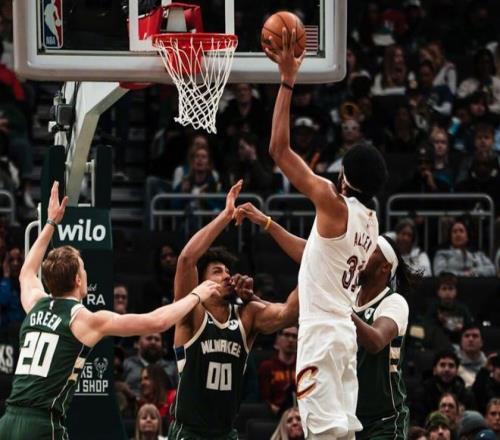 兩隊維持10分左右差距僵持幾分鐘,阿倫暴扣吹響反撲號角,施羅德?lián)寯喾磽?,隨后助攻托布強攻,加上埃利斯的三分球,騎士一波10-0追到只差2分。波蒂斯又進三分球,節(jié)末托布和埃利斯扛起進攻大旗,三節(jié)打完,騎士94-93反超雄鹿。決戰(zhàn)第四節(jié),埃利斯和托布繼續(xù)上分,AJ格林和希姆斯帶隊反超,阿倫勾手+造犯規(guī)重新拿回領先優(yōu)勢。最后5分鐘,兩隊比分交替上升,施羅德關鍵兩罰追平,羅林斯連拿4分。泰森罰球命中后,施羅德高難度拋投追平!最后1分鐘,小波特后仰跳投,施羅德打鐵,阿倫勾手壓哨打進!