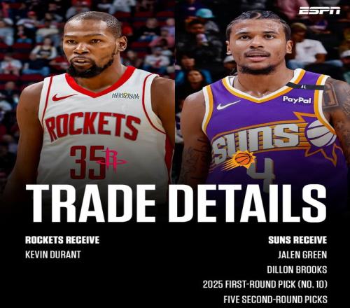 2025年夏天,火箭用他加上狄龍、2025年首輪10號(hào)簽、5個(gè)次輪簽,8換1從籃網(wǎng)換來了杜蘭特。當(dāng)時(shí)很多人說火箭賺了,用一堆邊角料換了個(gè)超巨。現(xiàn)在回頭看,格林這表現(xiàn),火箭恐怕是跑得最快的那個(gè)。