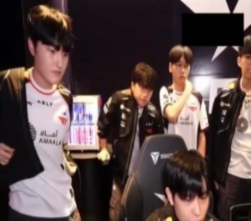 在對(duì)陣DK時(shí)的進(jìn)場(chǎng)鏡頭中,Keria并未與隊(duì)友一起進(jìn)場(chǎng);而賽中的轉(zhuǎn)播鏡頭中,Keria在休息室里站著有一點(diǎn)吃力,需要用手撐著桌子。