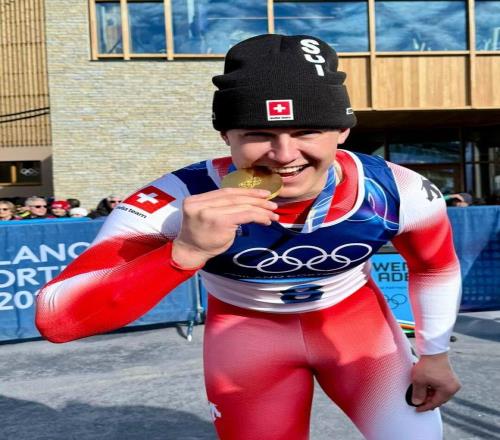 24歲的瑞士新秀弗蘭約?馮?阿爾門(Franjo von Allmen),他首次亮相冬奧就連奪三枚金牌,成為米蘭冬奧會的“三冠王”,也身著迪桑特。