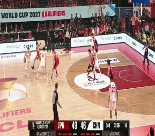 高詩巖借掩護三分追平比分!中國男籃49-49日本