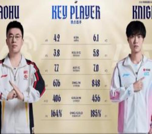 雙方中單數(shù)據(jù)對比:Knight多項數(shù)據(jù)領(lǐng)先于Xiaohu