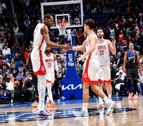 在此前的一場(chǎng)NBA常規(guī)賽中,休斯頓火箭在局面一度不利的情況下完成了大翻盤(pán),以113比108戰(zhàn)勝了主場(chǎng)作戰(zhàn)的奧蘭多魔術(shù)。本場(chǎng)比賽后,拿下了3連勝的火箭的戰(zhàn)績(jī)提升到了37勝21負(fù),繼續(xù)排名西部第3位,與身前的圣安東尼奧馬刺的勝場(chǎng)差為5.5場(chǎng),與身后的丹佛掘金的勝場(chǎng)差為半場(chǎng);而結(jié)束了兩連勝的魔術(shù)的戰(zhàn)績(jī)則是下滑到了31勝27負(fù),繼續(xù)排名東部第7位,與身前的費(fèi)城76人的勝場(chǎng)差為1.5場(chǎng),與身后的邁阿密熱火的勝場(chǎng)差為1場(chǎng)。
