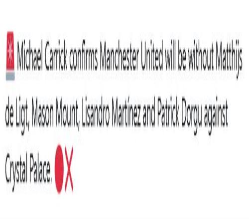 曼聯(lián)主帥卡里克透露,本周末與水晶宮的英超比賽中,受傷的四名球員梅森·芒特、利桑德羅·馬丁內斯、德里赫特和帕特里克·多古暫時無一可以復出。其中,6000萬英鎊中場芒特已經(jīng)恢復訓練,有望在下一輪做客紐卡斯爾聯(lián)時回歸。姆貝莫雖然對埃弗頓時因傷被換下,但無礙繼續(xù)參賽。