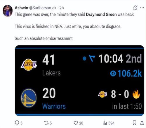 北京時(shí)間3月1日,金州勇士隊(duì)101-129慘敗洛杉磯湖人隊(duì)。這場比賽勇士隊(duì)一度落后湖人隊(duì)32分之多,勇士隊(duì)在主場輸?shù)铰?。德雷蒙?格林復(fù)出球隊(duì)就輸球讓很多勇士媒體破防了,追夢在場-30球隊(duì)最差。
