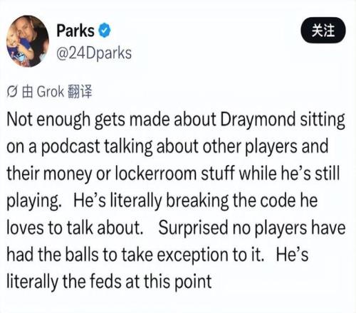 這場比賽后勇士媒體開噴追夢:他一邊打球一邊搞播客,其他球員在更衣室的事兒被他各種拿來調(diào)侃,他一直在破壞聯(lián)盟的和睦,我很驚訝為什么沒有球員站出來怒斥他,他將兼職當(dāng)主業(yè)干。