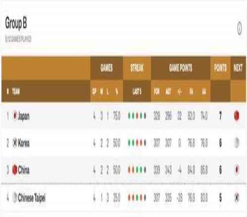 第二窗口期2場比賽打完,目前B組積分榜有了新變化。日本隊3勝1負(fù)穩(wěn)居第一,韓國隊2勝2負(fù)積6分,中國男籃同樣2勝2負(fù),卻因交鋒戰(zhàn)績0-2落后韓國,只能排在第3。