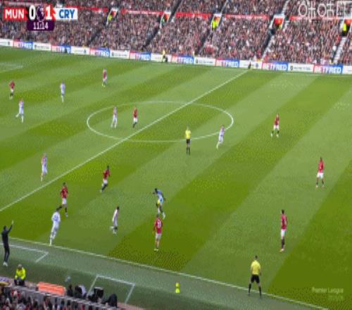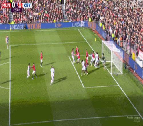 第4分鐘,約羅盯人不緊,拉克魯瓦角球頭球頂進(jìn)死角,水晶宮1-0領(lǐng)先曼聯(lián)