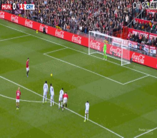 第65分鐘,B費(fèi)45度傳中,謝什科頭球破門,曼聯(lián)2-1反超水晶宮