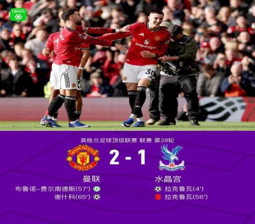劍南春曼聯(lián)21逆轉(zhuǎn)水晶宮,B費(fèi)傳射,拉克魯瓦閃擊+染紅