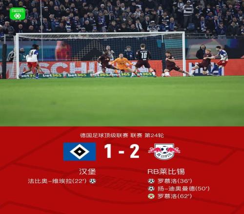 北京時間3月2日德國足球頂級聯(lián)賽 聯(lián)賽 第24輪,漢堡主場對陣RB萊比錫。漢堡法比奧-維埃拉破門。RB萊比錫羅慕洛破門,揚(yáng)-迪奧曼德破門。最終比分漢堡 1-2 RB萊比錫。