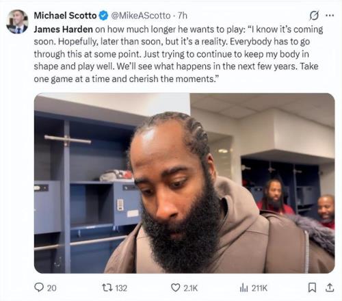 哈登賽后也談到自己的傷情,他表示:不考慮手術是為了盡早復出,一開始手指的確很疼,我連球都抓不住,我一直在冰敷。周六感覺好一些就去了單獨的訓練。這場比賽我失誤太多了,還無法很好的控制住球,只能讓拇指慢慢恢復。
