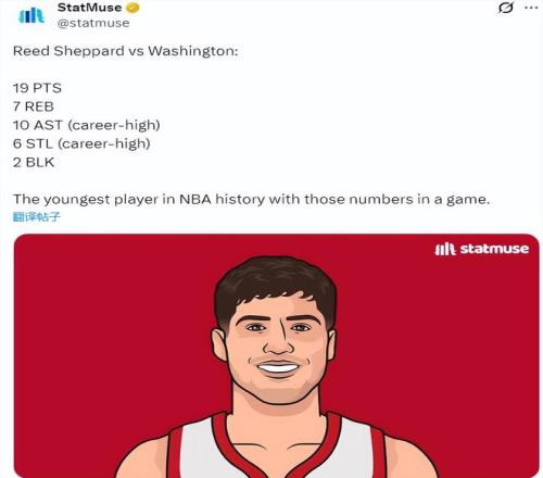首發(fā)出戰(zhàn)42分鐘,轟下19分7籃板10助攻6搶斷2封蓋,21歲的謝潑德打出了NBA生涯的全新的代表作,他的助攻和搶斷都創(chuàng)造生涯新高,還是生涯首次打出兩雙數(shù)據(jù)。21歲252天的謝潑德還成為NBA歷史上單場至少得到19分7籃板10助攻6搶斷2封蓋最年輕的球員?;鸺诳蛨鲆?23比118擊敗奇才,謝潑德又為球隊(duì)贏球立下大功。這位2024年的探花秀再次證明自己值得主帥烏度卡重用。