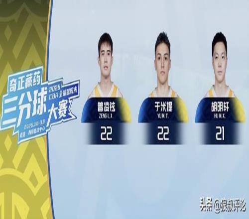 三分球大賽的預(yù)賽中,于米提、曾凌鉉投出了22分的高分,攜手投出21分的胡明軒晉級(jí)決賽。